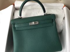 爱马仕凯莉包包官网价格 Hermes Kelly 25 BagZ6孔雀绿 金扣金属 御用原厂Togo小牛皮 全手工蜡线缝制。