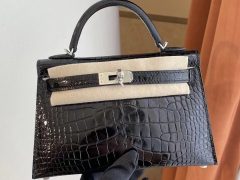 Dhabi Hermes MiniKelly 二代 Matte Alligator Crocodile 8L Beton 奶油白