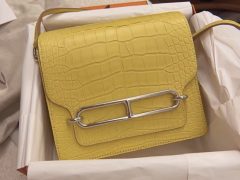 爱马仕猪鼻子包 Hermes Roulis 19cm Y1香草色 美洲鳄鱼拼 自然色蜥蜴 完美品相