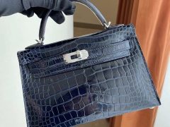 爱马仕迷你凯莉一代 Britain Hermes Mini kelly pochette 22cm CK89 Noir 黑色 Alligator Mississippiensis mat 雾面方块 美洲鳄鱼 全手工蜜蜡线缝制 in Stock