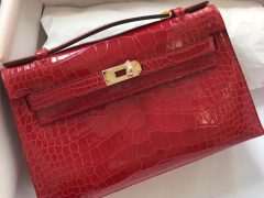 爱马仕迷你凯莉包 Hermes Mini kelly 22cm pochette 小手拿包 亮面鳄鱼皮皮革 Shiny nilo crocodile 葡萄紫 银扣 金扣金属。