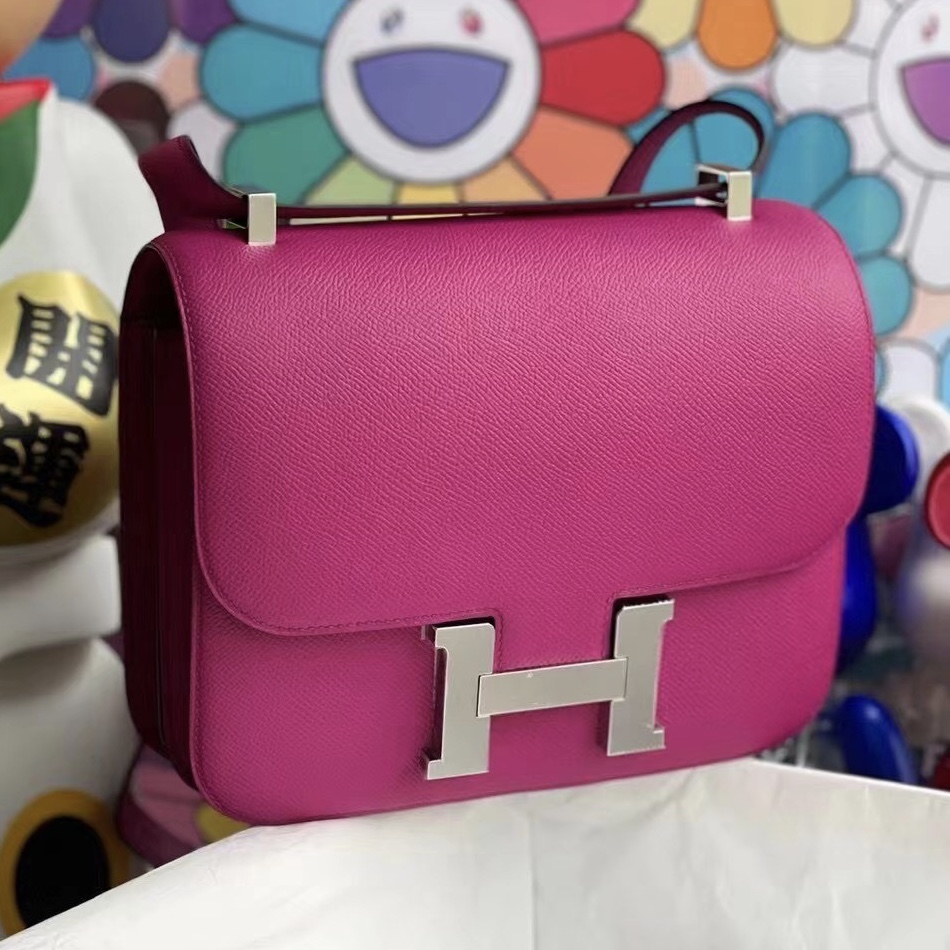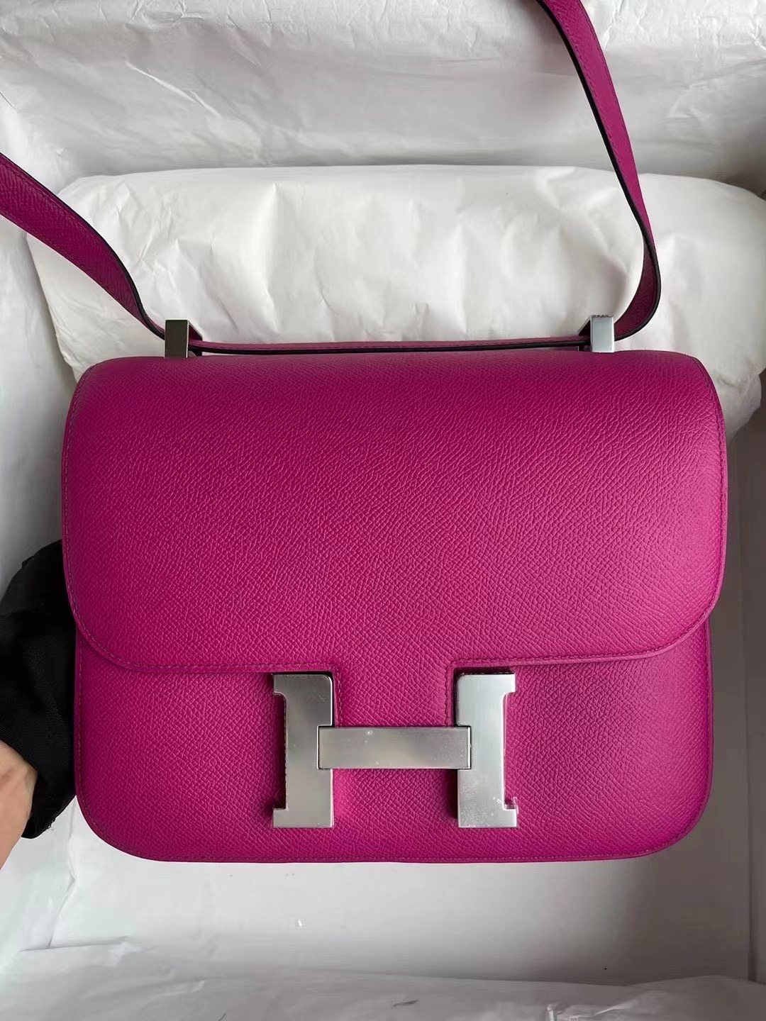 爱马仕康斯坦斯包价格 Hermes Constance 24cm Epsom L3 Rose Poupre 玫瑰紫 银扣 全手工蜜蜡线缝制