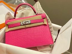 Dhabi Hermes MiniKelly 二代 Matte Alligator Crocodile 8L Beton 奶油白