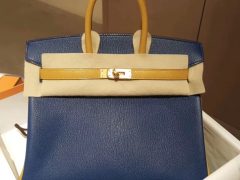 Hermes Birkin HSS 25cm Chevre CK73 Blue sapphire 9D芥末黄 拉丝金扣