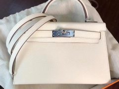 Dhabi Hermes MiniKelly 二代 Matte Alligator Crocodile 8L Beton 奶油白