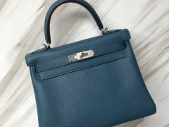 爱马仕包包官网凯莉包 Hermes Kelly 28 Bag 1P鸭子蓝 Blue Colvert 银扣金属 御用原厂Togo小牛皮 全手工蜡线缝制。