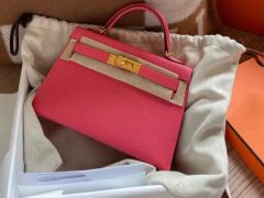 爱马仕包包官网 Hermes MiniKelly二代 9i玉兰粉Epsom牛皮 图片尺寸 19cm