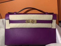 Hermes MiniKelly Pochette迷你凯莉包22 Epsom皮 P9海葵紫Anémone金扣