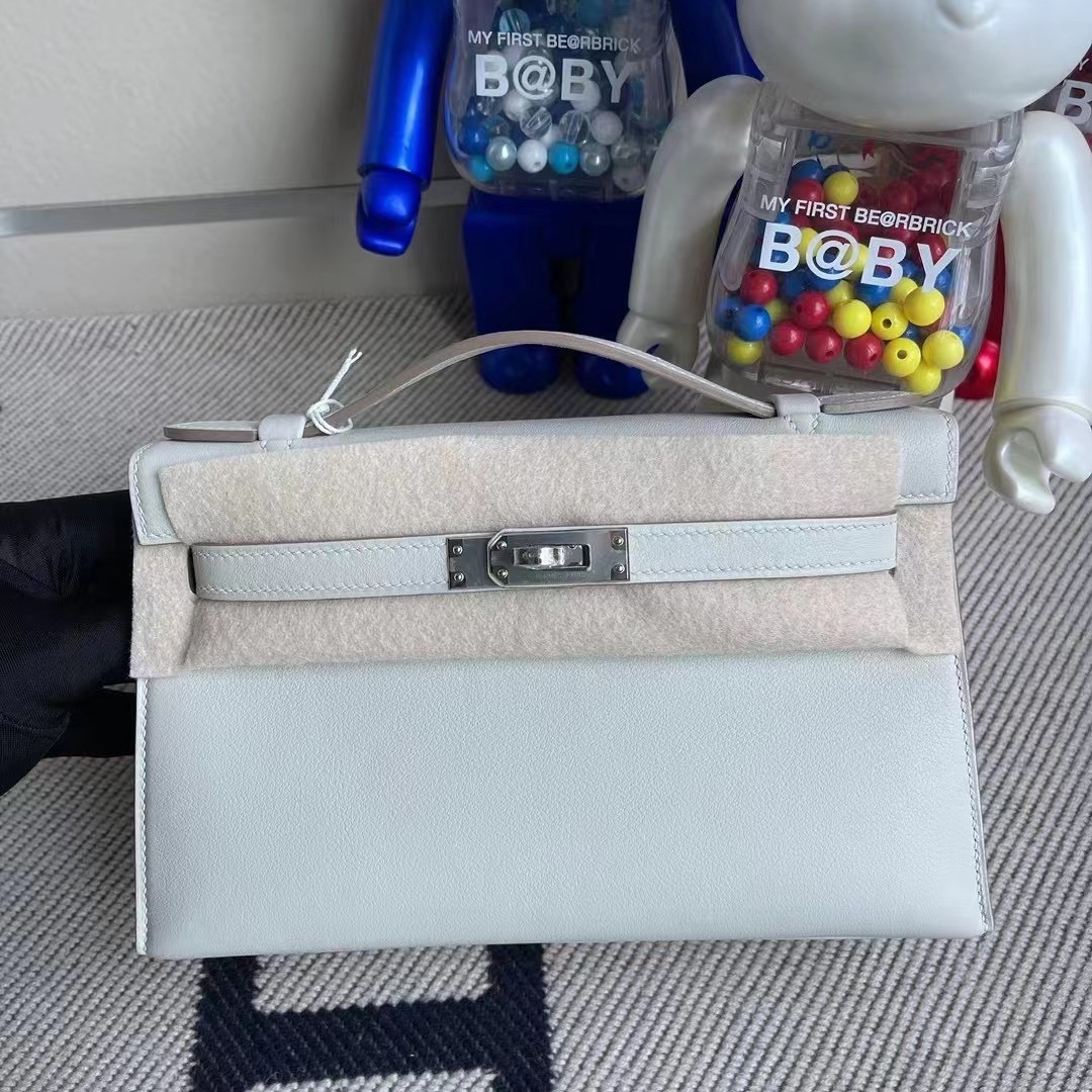 Canada Hermes MiniKelly Pochette 22cm Swift 80 Gris Perle 珍珠灰 全手工腊线缝制 金银扣 客定出