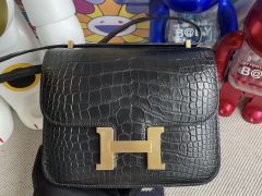 Hermes Constance 19cm 新颜色 M3墨水蓝 Blue Encre 亮面方块 美洲鳄鱼