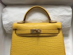 爱马仕迷你凯莉包2代 Hermes mini Kelly 二代 20cm Lizard 进口蜥蜴皮皮革 全手工蜜蜡线缝 CK73宝石蓝 金银扣金属