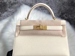爱马仕凯莉迷你包专柜价格 Hermes MiniKelly Pochette 22cm Swift calfskin i2 Nata 奶油白 全手工蜡线缝制 客定出