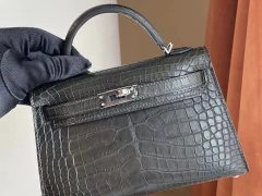 Dhabi Hermes MiniKelly 二代 Matte Alligator Crocodile 8L Beton 奶油白