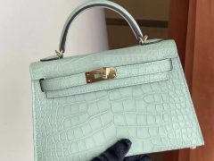 Dhabi Hermes MiniKelly 二代 Matte Alligator Crocodile 8L Beton 奶油白