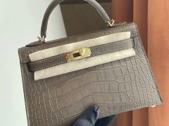 Hermes Mini Kelly Pochette 22cm 5P pink 樱花粉 雾面方块 美洲鳄鱼 Matte alligator crocodile 纯手工蜡线缝制 银扣 in stock