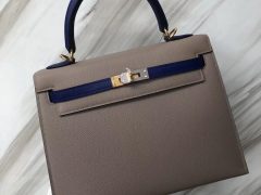 Singapore Hermes Kelly Bag 25cm 原厂皮Epsom CK10 Craie 奶昔白/M8 Gris Asphalte 沥青灰 金扣 全手工蜡线缝制 Customer Customized