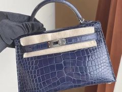 Hermes MiniKelly Pochette 22 P3北方蓝Blue de nord Epsom 银扣