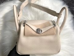 Hermès Mini Lindy Clemence CK10 Craie Palladium Hardware
