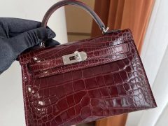 Dhabi Hermes MiniKelly 二代 Matte Alligator Crocodile 8L Beton 奶油白