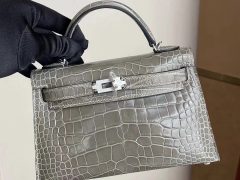 爱马仕迷你凯莉二代鳄鱼香港价格 Hong Kong Hermes Kelly Mini II 2代 8P 铅笔灰 亮面方块 美洲鳄鱼 Shiny Alligator Crocodile 银扣 全手工蜜蜡线缝制