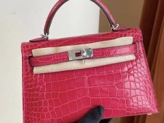 Manchester UK Britain Hermes Kelly Mini II 2代 J5 天方夜谭粉紫 Rose Sheheraradez 亮面方块 美洲鳄鱼 Shiny Alligator Crocodile 银扣 全手工蜜蜡线缝制