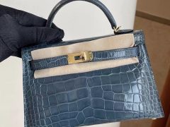 爱马仕迷你凯莉包一代价格 Saudi Arabia Hermes MiniKelly Pochette 22cm 7T Blue Electric 电光蓝 亮面方块 美洲鳄鱼 Shiny alligator crocodile 全手工蜡线缝制 银扣 in stock