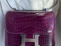 Hermes Constance 19cm 新颜色 M3墨水蓝 Blue Encre 亮面方块 美洲鳄鱼