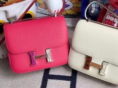 爱马仕康康包19寸价格 Hermes Constance 19cm Epsom i2 Nata 奶油白 配 鳄鱼 蜥蜴 扣 全手工蜜蜡线缝制 客定出