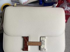 爱马仕康康包19寸价格 Hermes Constance 19cm Epsom I6 Rose Extrême 极致粉 + i2 Nata 奶油白 配 鳄鱼 蜥蜴 扣 全手工蜜蜡线缝制 客定出