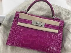 Dhabi Hermes MiniKelly 二代 Matte Alligator Crocodile 8L Beton 奶油白