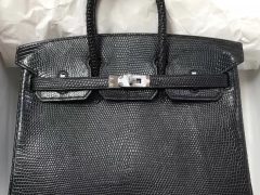 爱马仕铂金包 Hermes Birkin Bag 25cm Lizard 进口蜥蜴皮 全手工蜜蜡线缝 L3玫瑰紫 银扣 全手工蜜蜡线缝 银扣