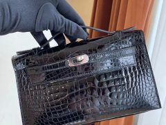 Norway Hermes MiniKelly Pochette 22cm 亮面方块 美洲鳄鱼 89 Noir 黑色 Shiny Alligator Crocodile 全手工蜜蜡线缝制