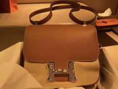 Singapore Hermes Constance 18cm Shiny alligator crocodile 亮面美洲鳄鱼方块 CC31 Miel 蜜糖棕/1I Beige sable 沙米色/6Q Vert Emeraude 翡翠绿 全手工蜜蜡线缝