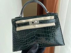 Dhabi Hermes MiniKelly 二代 Matte Alligator Crocodile 8L Beton 奶油白