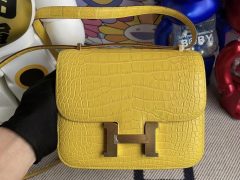 爱马仕空姐包包Hermes Constance 24cm 御用kk 南非鸵鸟皮 9D琥珀黄 金扣