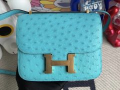Hermes爱马仕Constance空姐包 24cm Lizard蜥蜴皮 7Q希腊蓝 银扣 单肩包