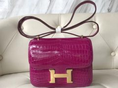 Hermes爱马仕空姐包 爱马仕康斯坦包 Hermes Constance 18cm F5勃艮第酒红 小康康鳄鱼 亮面两点 尼罗鳄鱼 Shiny alligator crocodile 完美品相 金扣 最实用的爱马仕小包