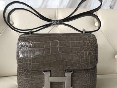 Hermes Constance 19cm 新颜色 M3墨水蓝 Blue Encre 亮面方块 美洲鳄鱼