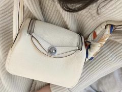 Hermès Mini Lindy Clemence CK10 Craie Palladium Hardware