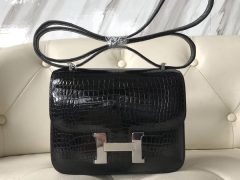 Hermes爱马仕空姐包 Hermes Constance 18cm CK81斑鸠灰 银扣 康康鳄鱼 亮面两点 尼罗鳄鱼 Shiny alligator crocodile 完美品相 金扣 最实用的爱马仕小包