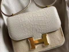 Hermes Constance 19cm 新颜色 M3墨水蓝 Blue Encre 亮面方块 美洲鳄鱼