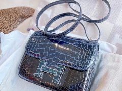 爱马仕亮面倒V 澳洲湾鳄 Hermes Constance Elan 26cm 57 Bordeaux 波尔多酒红 Shiny porosus crocodile