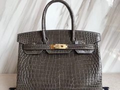 爱马仕包包官网价格 Hermes Birkin 30cm Matte nilo crocodile 雾面两点 尼罗鳄鱼 CK47巧克力色 金扣 全手工蜡线缝制定制