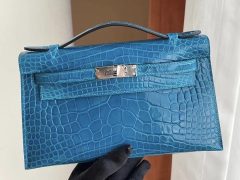 Hermes MiniKelly Pochette 22 P3北方蓝Blue de nord Epsom 银扣