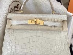 Dhabi Hermes MiniKelly 二代 Matte Alligator Crocodile 8L Beton 奶油白