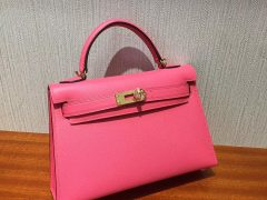 爱马仕包包官网 Hermes MiniKelly二代 9i玉兰粉Epsom牛皮 图片尺寸 19cm