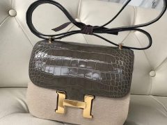 Hermes Constance 19cm 新颜色 M3墨水蓝 Blue Encre 亮面方块 美洲鳄鱼