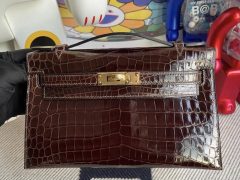 Dhabi Hermes MiniKelly 二代 Matte Alligator Crocodile 8L Beton 奶油白