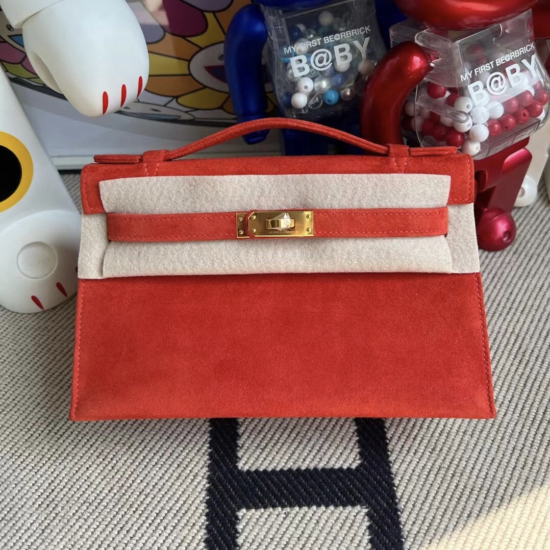 爱马仕包包款式大全 Vietnam Hermes Hermes Mini Kelly Pochette 22cm Doblis Suede 麂皮 S3 Rose de coeur 心红色 金扣 全手工蜜蜡线缝 客定出