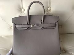 爱马仕birkin价格 Hermes M8沥青灰Birkin 25cm 御用原厂Swift皮 全手工蜜蜡线缝 金扣